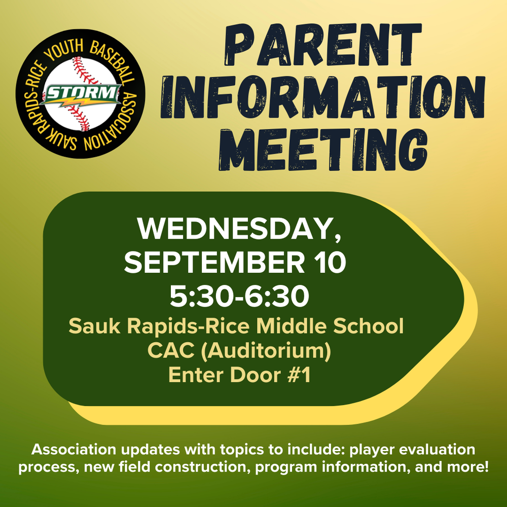 Mark your calendars and join us to receive youth baseball updates including: player evaluation process, new field construction, program information and more!