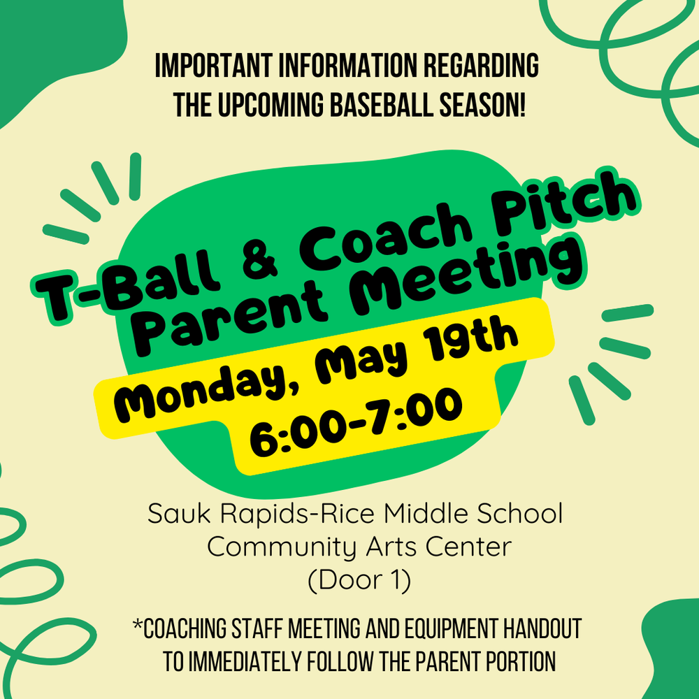 Please join us for an informational meeting on Monday 5/19 at 6:00 at the Sauk Rapids-Rice Middle School CAC to gain valuable info for the upcoming season, which starts SOON! There will be a coaching staff meeting immediately following the parent portion.